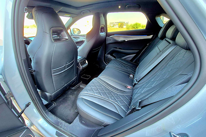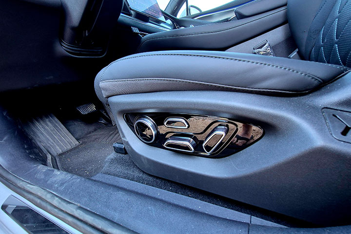 הישיבה גבוהה ושולטת, המושבים הקדמיים נוחים מאד, יש להם הזזה חשמלית, חימום ואוורור וגם הדום נשלף חשמלית.
