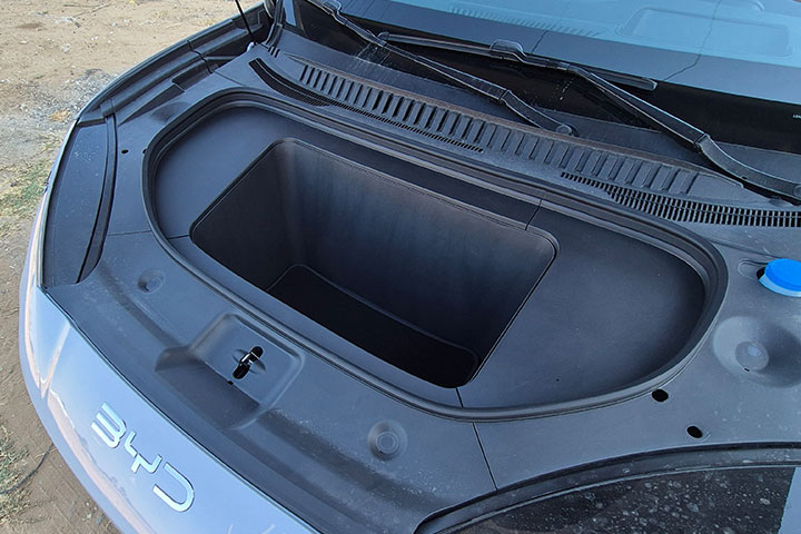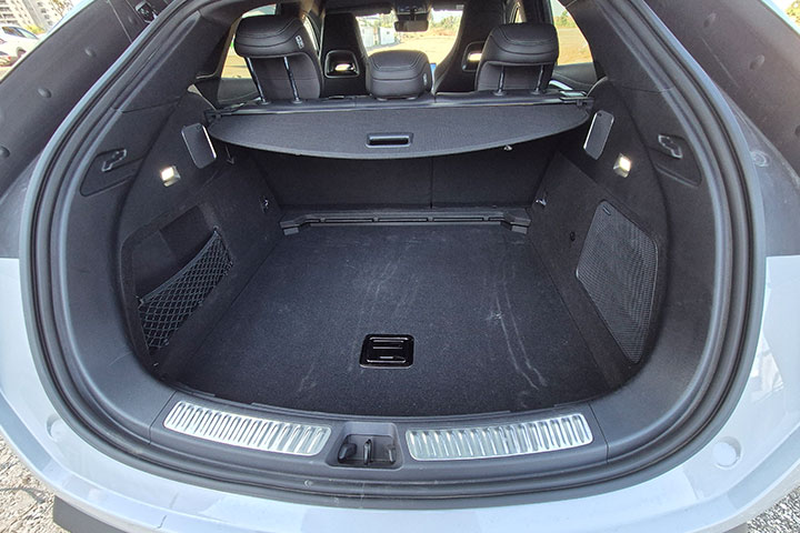 תא המטען נפתח חשמלית עם מחוות רגל והוא גדול יחסית- בנפח 520 ליטרים, המבנה רחב וסף ההטענה לא גבוה מדי. מדף הרצפה ניתן להנחה בשני מצבים – כשהנמוך נמצא 4 ס"מ מתחת לרגיל, מתחתיו תא אחסון די עמוק, המתאים לערכת הניפוח או לכבלי טעינה, בנוסף קיים גם תא מטען אחד מלפנים בנפח 58 ליטרים, לטובת תיק גב או חבילה קטנה.