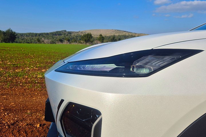 פנסי הלד בחזית צרים ונותנים מראה קרבי, האף האטום מחודד ובולט, מכסה המנוע עם קימורים כוחניים ובפגוש יחידות תאורת לד ראשית המעוצבות כלועות ענקיים של כונסי אוויר.