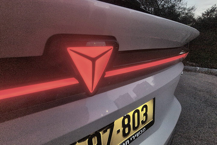 הלוגו המשולש, שמאחור אף מואר במרכז פס הלד האדום, הזכיר לי דווקא את זה של פונטיאק, מותג אמריקאי אייקוני מהעבר.