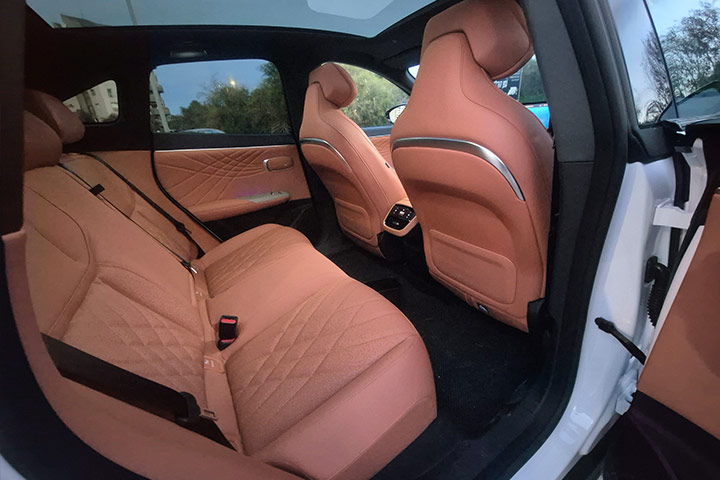עוברים אחורה ומייד מקבלים את היתרון הגדול שמקנה בסיס הגלגלים הגדול. המרווח לרגליים מעולה, כך גם לראש, וגם המרווח לכתפיים יאפשר לשלושה מבוגרים לשבת שם.