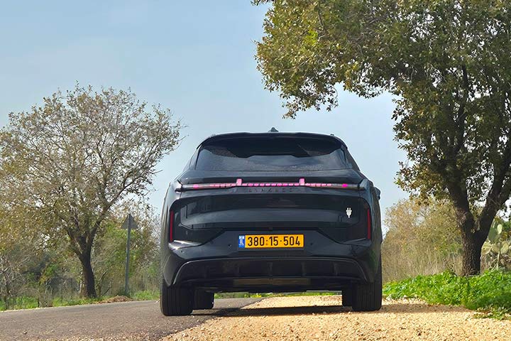 מאחור יחידות תאורה אופייניות, שגם פגשנו לאחרונה במבחן של דגם ה-02 החשמלי, הבנויות מפס רוחבי ואדום, הכולל 2 פסים אנכיים קצרים. מעל יש ספוילר גג מפוצל, מגב המסתתר מתחתיו ופגוש אחורי מעוצב היטב.