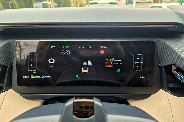 ושם- הקילומטראז' שעבר בפועל מתחת לגלגלי הרכב תאם בכ-85 אחוזים את זה שנראה במחשב הדרך. מכאן, שטווח משותף של כ-900 ק"מ בתנאי המבחן ריאלי לחלוטין; צריכת הדלק המשותפת, שכללה גם את רוב הקילומטרים שנסענו אחרי שעברנו למצב היברידי, נקבעה על 4.9 ליטרים לכל 100 ק"מ. צריכת החשמל הממוצעת נעצרה על 9.6 קווט"ש ל-100 ק"מ.