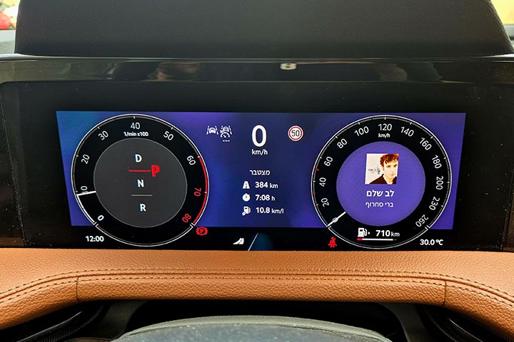 לוח המחוונים דיגיטלי (10.25"), התצוגות המתחלפות ברורות ומתכתבות היטב עם הנדסת האנוש המצוינת.