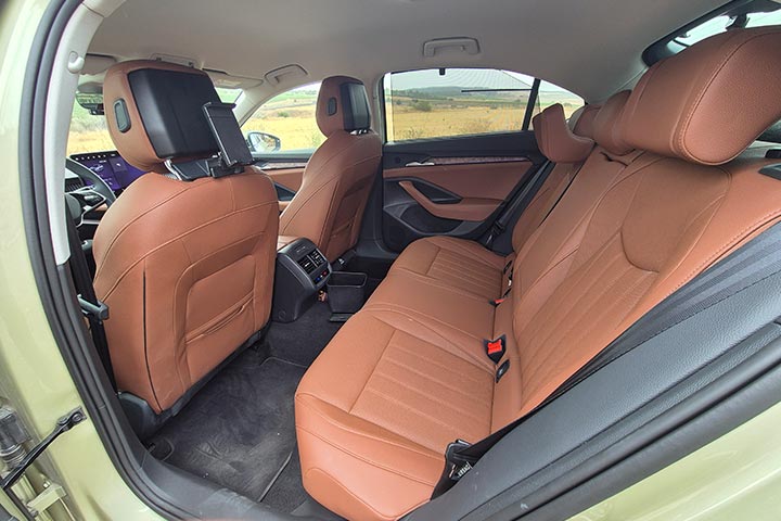 מאחור ישנה מדרגה גבוהה במרכז, אולם בסיס הגלגלים הגדול, יחד עם תכנון חכם של תא הנוסעים, יוצרים מרחב מעולה לרגליים, וגם לראש ולכתפיים יש מספיק מקום – אפילו לשלושה מבוגרים. המושבים כאן נוחים ובסיס המושב ארוך באופן יחסי.