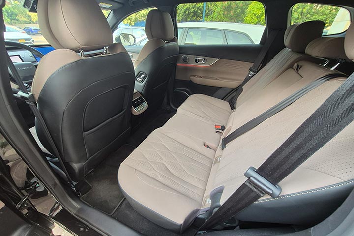 מאחור מפתח רחב של הדלתות מגלה מושבים נוחים ורחבים, לא מעט מקום לרגלי הנוסעים, גם לזה המרכזי לאור העובדה שהרצפה כמעט שטוחה, המושבים עצמם יושבים על מסילות לטובת מרווח לרגלי היושבים שמאחוריהם, וניתן גם לקבוע את זווית משענת הגב; גם הרוחב לשלושה טוב, ואין מגבלת מקום לראש – גם לנוסעים גבוהים.