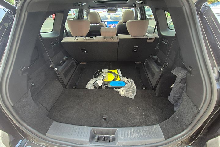 כשכל המושבים בשימוש, תא המטען שנותר קטן למדי (193 ליטרים), מתחת לרצפתו מעט מקום לאחסון ערכת הניפוח וכמה חפצים לא גדולים נוספים. כשמקפלים את מושבי השורה השלישית למצב שטוח, המצב משתפר מהותית, עם תא מטען המאפשר נפח אחסון נאה של 1,179 ליטרים.