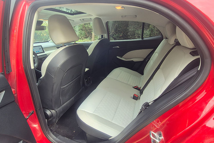משענת גב המושב אחודה, וזה אומר שלא ניתן לקפל חלק ממנה לטובת העמסה חריגה פלוס נוסע אחורי, מאידך, זה לא באמת היעוד של ה-MG3.