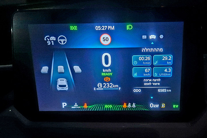 יצוין כי חלק ממערכות הבטיחות עובדות כאן עם מוטיבציית יתר, ויש לא מעט צפצופים כמו זיהוי תמרור והתרעה על חריגה ממה שמופיע בו, שכנראה תרצו לנטרל, בכל נסיעה מחדש, דרך המסך הראשי.